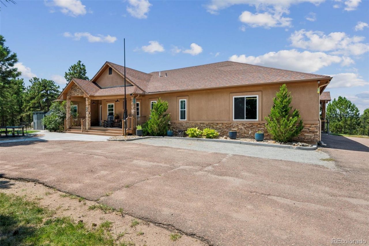 Welcome to Saddle Blanket Ranch! This 7,000+ square foot multi-generational home sits on 35 beautifully treed acresand features 8 bedrooms, 4 baths and garage space for 9 cars as well as a fully functioning mother in law suite with fullkitchen, full bath and laundry space! This beautiful home has 2 wood burning fireplaces and energy efficient radiant heatingthroughout. The open concept main level kitchen features GE Cafe appliances, gold hardware, professional ice maker,breakfast bar, prep sink and a large pantry. The great room has a wood burning fireplace with custom surround and wideplank luxury vinyl flooring. The HUGE 532sf deck boasts tranquil forest views with Pikes Peak as the focal backdrop! imaginehaving your morning coffee or evening beverage watching the sunset here, absolutely stunning! The Primary suite is its ownretreat with attached 5 piece bath, soaking tub and walk in shower, fireplace and walkout to the oversized deck. There are 3full kitchens and 3 laundry spaces throughout the home, including a full kitchen and laundry space on the lower level. Mainlevel laundry includes built in cabinets for extra storage and a sink. There is a secondary ensuite on the main level withattached full bath, and 2 additional bedrooms, an office and a mudroom. The walkout basement features 3 additionalbedrooms, a HUGE family room, media room, home gym w/ attached laundry space, full kitchen, full bath and bonus storageareas. Pool table and foosball table are included! Cabinets in the office, basement and garage create extra storage space andstay with the home. Outside youll find 2 versatile 25x45 metal utility building that are perfect for storing extra vehiclesand toys. Rv parking on site. Whole house water filtration, reverse osmosis system,Starlink installed and fiber optic for highspeed internet. Beautiful custom upgrades throughout! 35+ acres of lush forest, 3 Greenhouse and a cute chicken coopmake this a homesteaders delight!