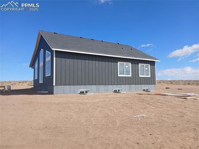 Near completion, this impressive Atticus Prairie Home, barndominium version, perfectly blends classic country character with modern design and conveniences. The exterior features timeless board-and-batten siding, a barn-style roof line, and an expansive full-length front porch spanning the entire front of the home.There is a generously sized mudroom just off the entry providing a practical space for storing gear and boots. At the heart of the home is an open-concept kitchen and spacious great room, highlighted by vaulted ceilings and a wall of windows that fill the space with natural light showcasing mountain, prairie, and sunset views. The chef-inspired kitchen is equipped with stainless steel appliances, abundant cabinet/pantry storage, and a striking 8-foot quartz island, ideal for entertaining and everyday living. The primary suite offers a spacious retreat with double sinks, quartz counter top, tile and carpeted flooring, and a large walk-in closet. Also on the main floor, two well-sized secondary bedrooms share a full bath and are strategically positioned to maintain privacy for the main suite. All bedrooms are finished with ceiling fans. The full basement includes a mechanical room, plumbing rough-in for a third bath, extensive insulation, natural lighting, and a large functional space allowing endless potential for future expansion; office, family room, media, rec room, or other desired space. Despite the rural lifestyle you’re never far from urban conveniences; only 12 minutes to grocery and hardware stores, 16 minutes from Schriever AFB gate, 22 minutes from Colorado Springs Airport, and less than 30 minutes to downtown Colorado Springs. This is a rare opportunity to own a brand-new, high-quality home on 35 acres w/privacy, expansive views, and all just a short drive from urban conveniences. The modern design offers a thoughtful blend of comfort, style, and quality finishes, along with ample space to grow and expand.
