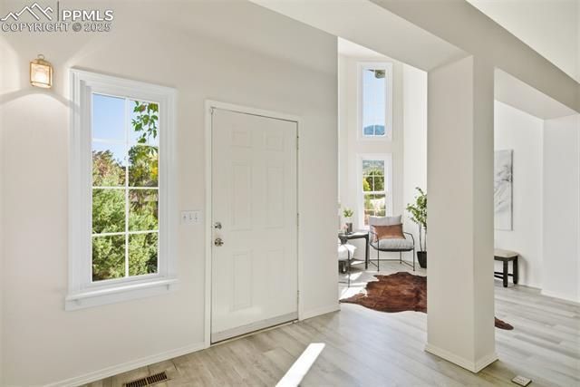 Welcome to this beautiful, original owner home nestled next to open space conserved in perpetuity. This thoughtfully designed home was created by the owner to capture views of nature from every room. Whether it is the towering view of Cheyenne Mountain or the wonderful sight of the thoughtfully designed water-wise mature garden filled with perennial flowering plants, shrubs that act as a privacy barrier, as well as mature trees to help the view seamlessly connect to the open land behind every single room in the home that has a view of nature. Perfectly positioned in the coveted Broadmoor area, this first-time offering blends comfort, design, and connection to the outdoors. The main-level primary bedroom and five-piece bath provide convenient single-level living, while the 2nd upper-level area with a separate entrance that could be locked off, features a versatile mother-in-law suite, ideal for extended family, guests, or private office space. Every window frames tranquil scenes of mountain vistas and the preserved natural hillside directly behind the home—protected forever under a perpetual conservation easement, ensuring lasting privacy and beauty. Situated on a spacious 0.638-acre lot, the extensive property offers room to build an ADU (Accessory Dwelling Unit) or even potential for subdivision for future development opportunities. The possibilities are endless for those seeking flexibility and long-term value. Experience Colorado living at its finest—surrounded by open space, wildlife, and views, yet just minutes from the Broadmoor Hotel, Cheyenne Mountain Conference Resort, Country Club of Colorado, Cheyenne Mountain State Park, and located within the award-winning District 12 school district. Come check out this incredible property today.