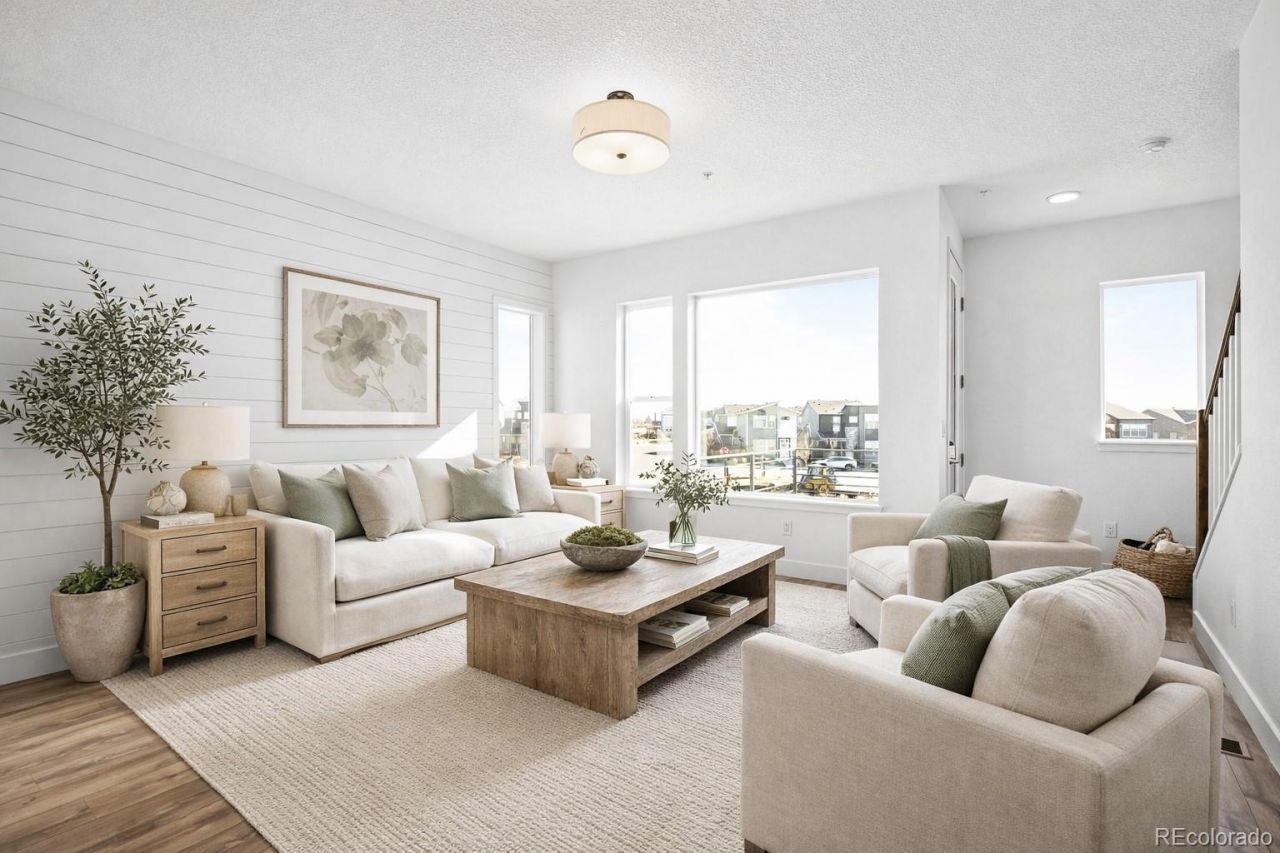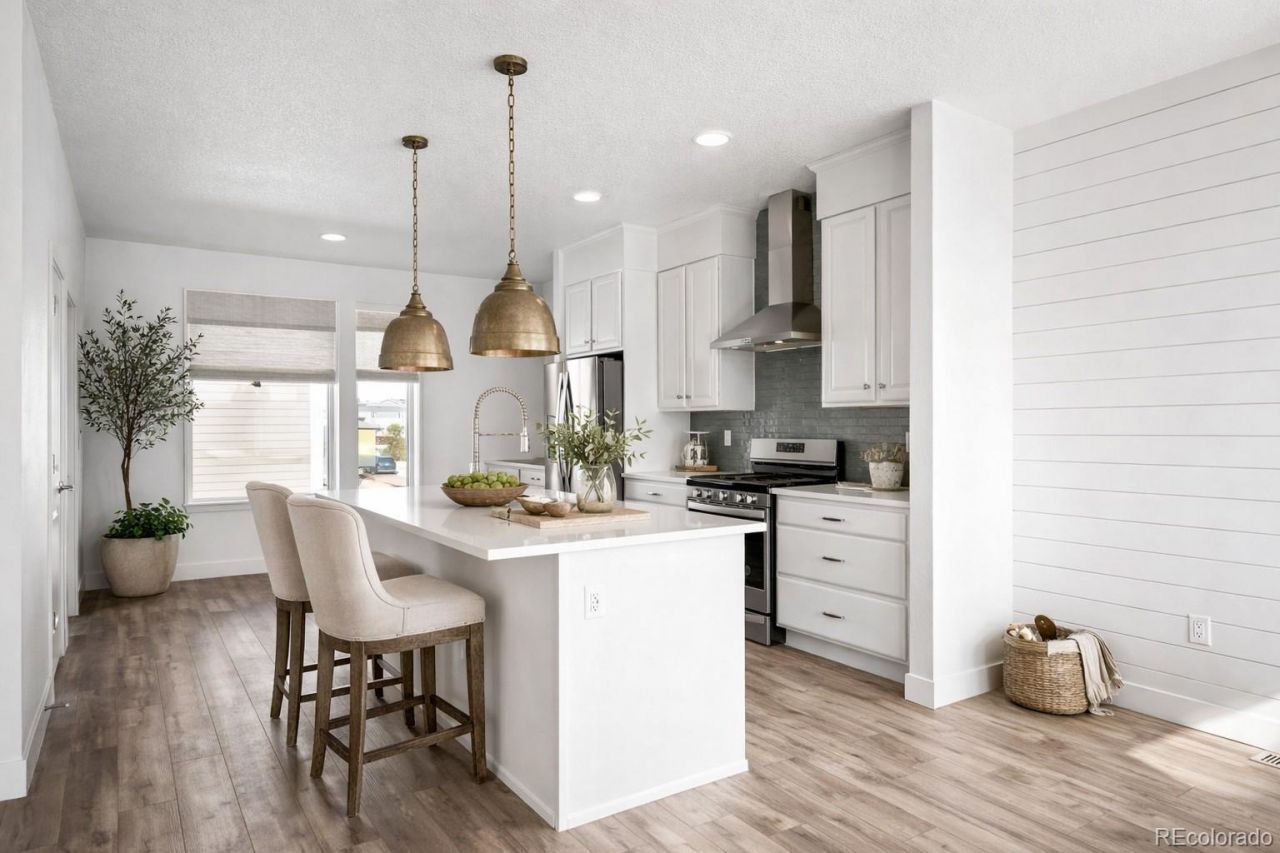 Welcome to your luxury living era at Westminster Station. Originally intended as a model home, this end-unit townhome is fully upgraded and move-in ready, offering designer finishes and exceptional natural light from numerous oversized windows and tall ceilings throughout.Enter from your private 2-car garage or charming front porch into a thoughtfully designed lower level with a mudroom and powder bath, perfect for active, on-the-go living. The open-concept main level features 9 ceilings, an expansive living and dining area, and a beautifully upgraded kitchen with white Maplecrest cabinetry, Denali quartz countertops, ceiling-height backsplash, upgraded Whirlpool appliances, and additional cabinetry for enhanced storage. Step onto your east-facing balcony overlooking the extra-wide courtyard, ideal for morning coffee, container gardening, or relaxing evenings.Upstairs, two generously sized bedrooms each offer luxury baths and walk-in closets. The primary suite showcases a frameless Euro shower and elevated designer finishes including ceiling-height tile, while the secondary bedroom includes a tub/shower combo with coordinating upgrades. A conveniently located upper-level laundry room with upper cabinets adds everyday ease.High-end upgrades include Oak WPC flooring throughout, upgraded plumbing and lighting fixtures, custom tile details, added cabinetry in the powder room and laundry room, and included refrigerator and washer/dryer.Enjoy low-maintenance living with HOA-covered exterior upkeep, snow removal, and courtyard landscaping, giving you more time to explore nearby trails, parks, coffee shops, and fitness studios. Located minutes from US-36, the Westminster Light Rail station, and the Denver-Boulder corridor, this home delivers style, connectivity, and convenience in one of the areas most accessible communities.Ask about current builder incentives, including a 4.99% 30-YEAR FIXED RATE through the preferred lender and lease buyout options.
