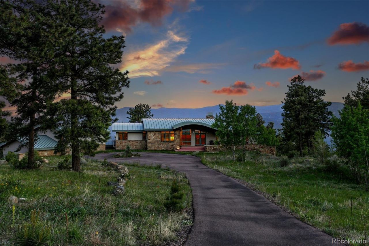 Set behind a private gate on over 50 acres, this exceptional Colorado mountain estate offers seclusion, acreage and elevated living just outside Golden. Designed by acclaimed architect Sears Barrett and built in 2009, the home is positioned to capture sweeping views of meadows, open skies, and snow-capped peaks through floor-to-ceiling windows that blur the line between indoors and out. The light-filled, open-concept layout features soaring ceilings, mahogany hardwood floors with radiant heat, 8-foot interior doors and refined finishes throughout. The living area flows into a gourmet kitchen with high-end stainless steel appliances, quartzite countertops, abundant cabinetry, and access to dining spaces and outdoor patios, ideal for entertaining and everyday living. The main-level primary suite is a private retreat with a fireplace, dual walk-in closets and a spa-inspired five-piece bath with jetted soaking tub and oversized shower. Upstairs, three guest bedrooms provide comfort and privacy. A finished ADU above the 3-car garage includes a full kitchen, bathroom, and flexible living space ideal for guests, extended family, or a creative studio. Outside, enjoy private trails, abundant wildlife, open skies, and total tranquility. Horse-friendly and zoned under the Colorado State Forestry Service agricultural program, the property offers valuable tax and utility benefits. The land is off-grid capable with solar, wind, propane, a private well, and full wiring for security, internet, and whole-home audio. Zoned for subdivision, the acreage offers potential for investment, development, or multigenerational living. Despite its privacy, the property is just 20 minutes from Downtown Golden and approximately 45 minutes from Denver, Boulder, and world-class skiing, with rare back-road access to I-70 via Idaho Springs to bypass Floyd Hill traffic. A rare blend of privacy, architectural pedigree, sustainable infrastructure, and proximity that is nearly impossible to replicate.
