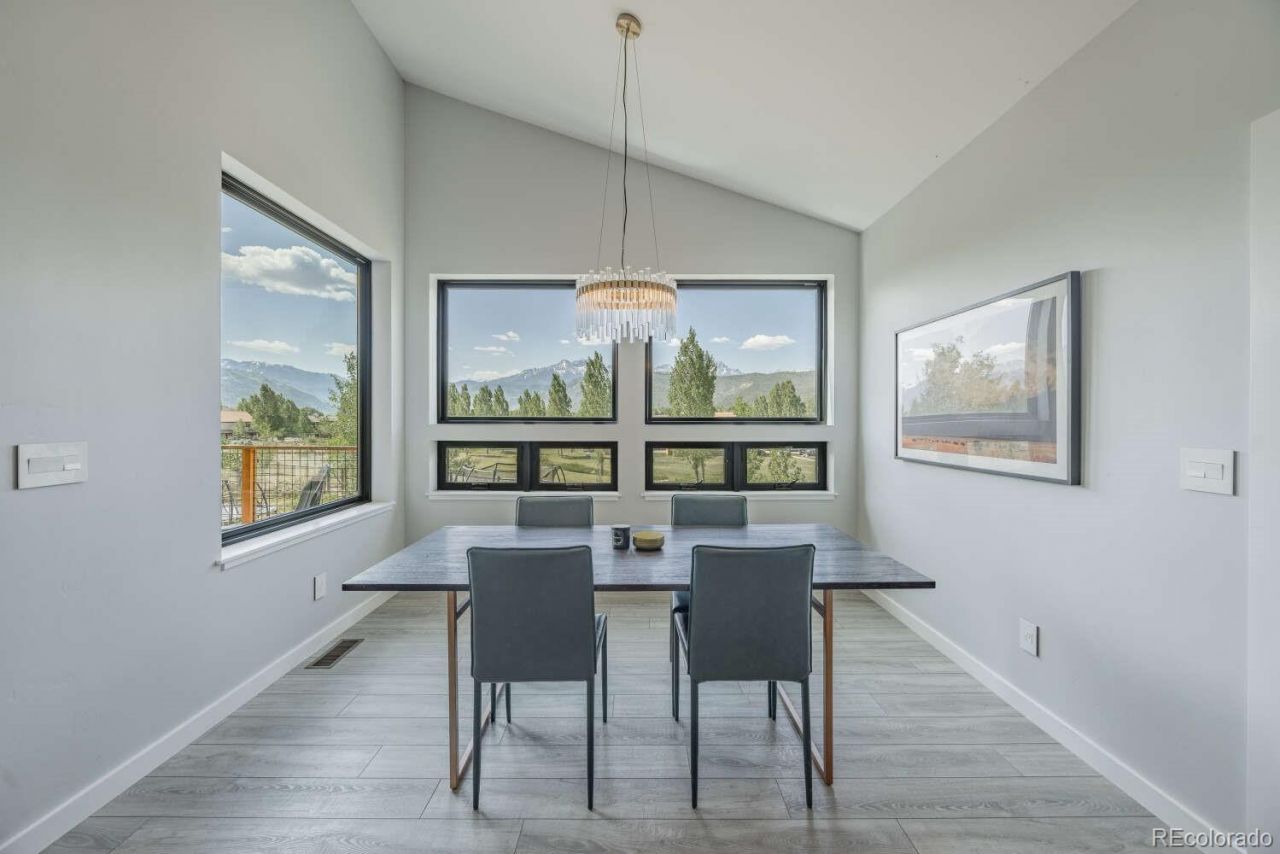 This custom-built home in Ridgway, Colorado offers expansive mountain views, thoughtful design, and a flexible layout ideal for both personal use and income potential. Located within walking distance to downtown Ridgways restaurants, shops, and parks, the home is perfectly positioned between Ouray and Telluride, making it a year-round base for mountain adventure. Inside, youll find vaulted ceilings, passive solar design, and natural materials that bring warmth and comfort. Oversized windows and a large deck frame views of the Sneffels Range, while the open-concept living area connects seamlessly to a chef-style kitchen with a full wall of built-in refrigeration, quartz countertops, and modern finishes. A spacious mudroom with five built-in lockers adds functional beauty for outdoor lovers or large families. The primary suite features a luxurious soaking tub and mountain views, while a second en suite bedroom upstairs can serve as an additional primary suite or guest retreat. Downstairs, a bonus living room and game room offers flexible space for entertaining, relaxing, or hosting. What sets this home apart is the lower-level studio apartment with a private entrance, full kitchen, and two beds. It is already earning 5-star reviews on Airbnb and is perfect for hosting guests, generating income, or offsetting your mortgage. Its a turnkey setup for short-term rental success. The home stays cozy in the winter with passive heat and remains naturally cool in the summer thanks to thoughtful architectural design. With a large two-car garage, ample storage, and a track record of guest satisfaction, this home is both a stunning retreat and a smart investment.