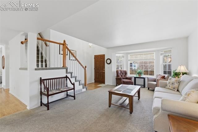 Nestled in a prime Rockrimmon location near Piñon Valley Park and the southwest entrance to Ute Valley Park, this move-in ready home offers easy access to trails, parks, and everyday amenities. Fresh interior paint and real hardwood floors on the main level welcome you inside, where soaring vaulted ceilings, skylights, and a cozy gas fireplace make the great room bright and inviting. The main level also features a convenient laundry area, powder bath, and direct access to the landscaped backyard, unfinished basement, and garage. All four bedrooms are located upstairs, including a private primary suite with vaulted ceilings, brand-new LVP flooring, and a spacious five-piece bath. Enjoy outdoor living on the well-maintained deck overlooking a fully fenced, manicured yard. The unfinished basement offers excellent storage and future expansion potential. Just minutes from Wilson Ranch Pool, Garden of the Gods, shopping, and dining, this home blends comfort, thoughtful updates, and an unbeatable northwest Colorado Springs lifestyle.