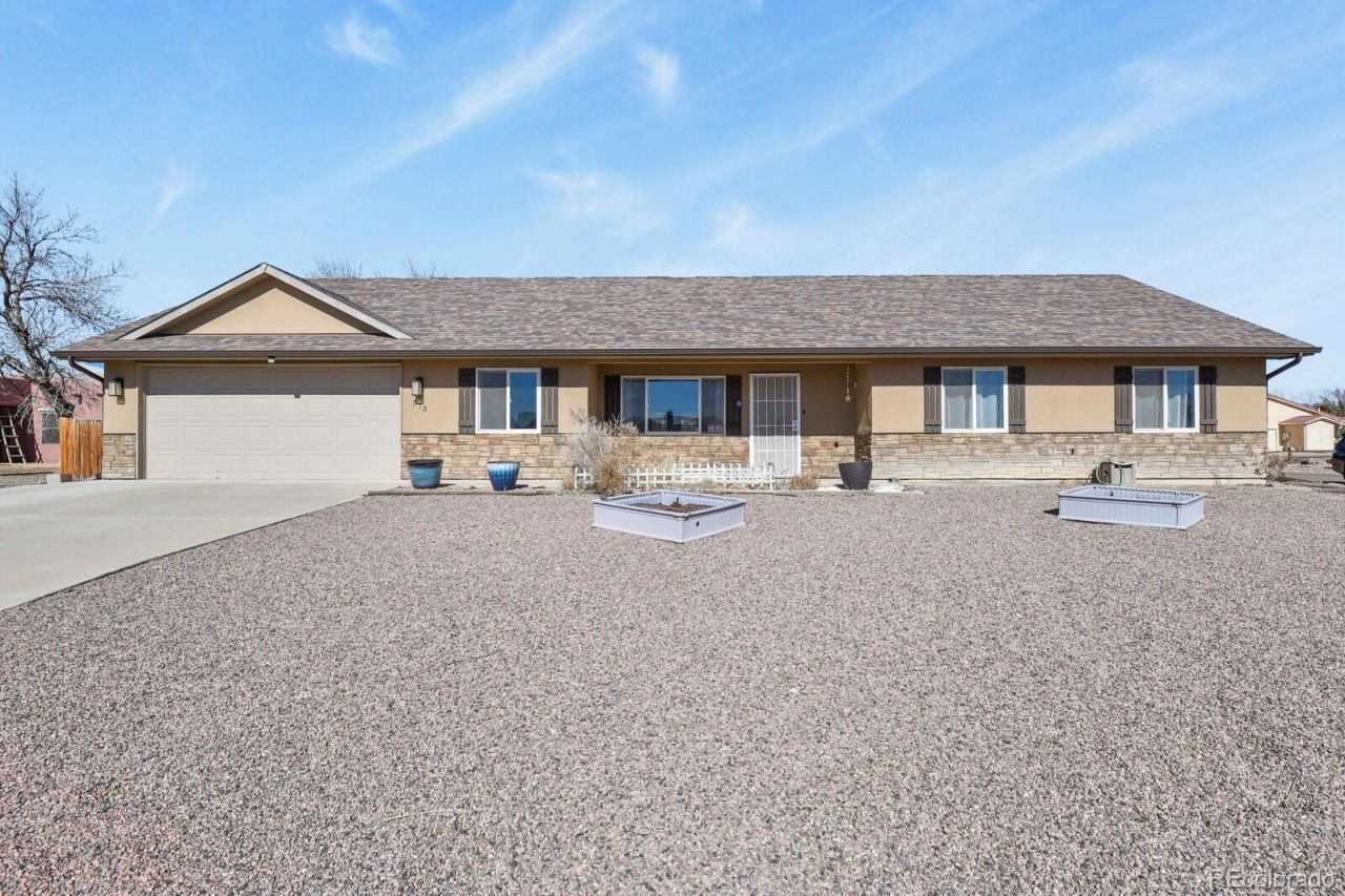 Welcome to this well maintained ranch-style home built in 2016, ideally situated on an oversized corner lot spanning .38 acres. Offering 3 bedrooms, 2 bathrooms, and 1,783 square feet of comfortable single-level living, this home combines space, function, and convenience. The home features a large laundry and mud room.The open layout features granite countertops, stainless steel appliances and a great flow. An attached 2-car garage adds convenience and a large storage room, while RV parking and the absence of an HOA provide flexibility rarely found.The xeriscaped front yard with planter boxes and a covered front porch creates inviting curb appeal with low maintenance in mind. The expansive lot offers room to relax, garden, or customize your outdoor space to suit your needs.Located just a short walk from the neighborhood elementary school, this home delivers a great balance of privacy, accessibility, and community, an excellent opportunity in Pueblo.