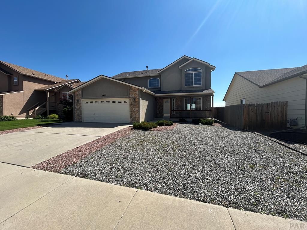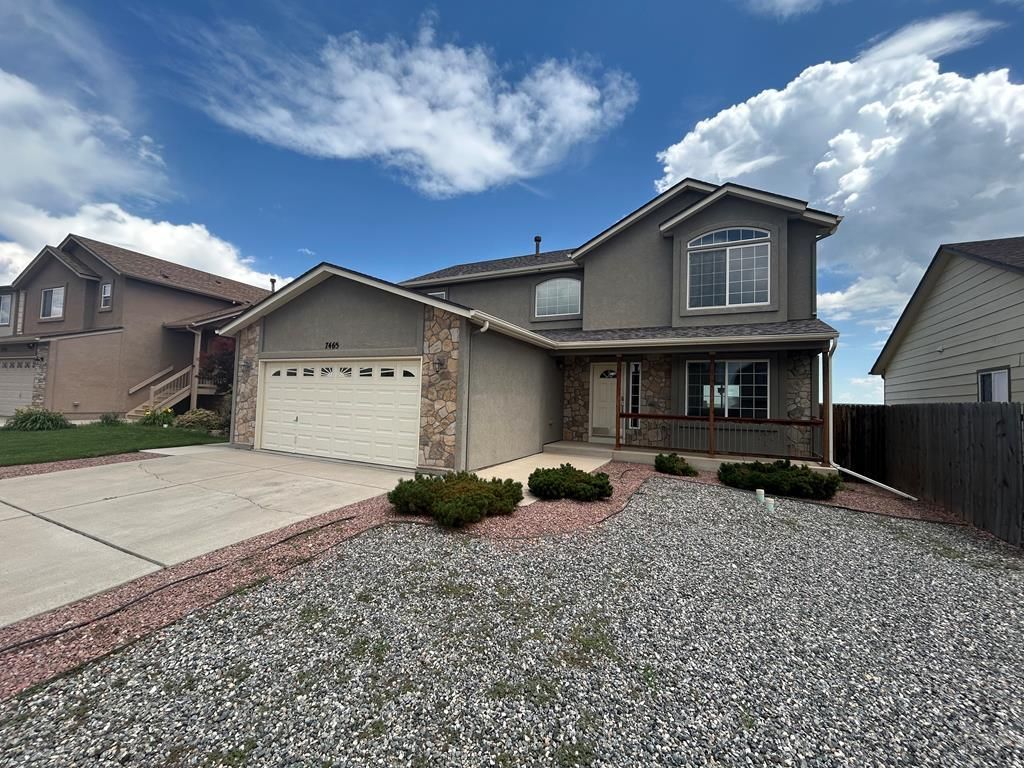 Assumable loan is an option for this fabulous 5 bedroom, 4 bathroom home located in The Glen at Widefield! Stucco exterior with beautiful stone accents. The main level features a formal dining room with modern crystal chandelier, living room, family room with stone accented gas fireplace, dine in kitchen and powder room with attached laundry area. The kitchen has a walkout to the back deck, island, nice granite countertops and tile floor. The upper level includes three bedrooms and two bathrooms. The large primary suite boasts vaulted ceilings, oversized walk in closet and attached 5 piece bathroom with nice raised double sink vanity. Check out the wet bar and large bonus living room areas in the basement, as well as another 3/4 bathroom and two more bedrooms! Other amenities include a 2 car attached garage, central air conditioning and a xeriscaped front yard. Enjoy the privacy fenced backyard with nice deck and patio areas, pergola with firepit, as well as raised plant beds. Covered front porch. Home includes range, refrigerator, microwave and dishwasher. 3,390 sq. ft. of living space. District 3 schools.