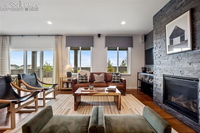 Experience luxury living in this stunning former Vantage Homes model, perfectly positioned to capture breathtaking, unobstructed views of Pikes Peak. Located in the highly sought-after School District 20, this meticulously crafted home offers a rare combination of designer finishes, functional elegance, and outdoor beauty. Step inside to soaring ceilings, expansive windows, and an open concept floor plan that fills the home with natural light and showcases the mountain vistas from nearly every room. Thoughtfully designed upgrades include gourmet kitchen appliances, quartz countertops, custom cabinetry, luxury plank flooring, and a spa inspired primary bath delivering both style and comfort. Entertain effortlessly in the spacious living and dining areas, or take the party outside to your fully landscaped backyard oasis. With a covered patio, professionally designed landscaping, full fencing and uninterrupted views, the outdoor space is an extension of the home’s high-end design. From top-rated schools and nearby trails to modern amenities and a vibrant community, this home offers not just a place to live but a Colorado lifestyle worth investing in. With the turnkey condition and model quality finishes, this is the one you’ve been waiting for.