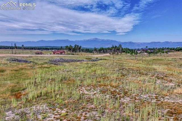 5 acres treed and meadow and jaw dropping, phenomenal Pikes Peak and mountain views located in sought after and close-in south Black Forest. Gorgeous mature Ponderosa Pines and lush green meadows. Fiber optic internet is available. Close proximity to Award winning School District 20. No covenants or HOA. Horses, outbuildings, chickens and other animals are allowed. Walking distance to Section 16 and Pineries Open Space. Section 16 is 640 acres of State of Colorado owned treed open space w/ walking, biking and equine trails. Pineries Open Space features equestrian friendly trails with 1,100 acres of open space and parks. Multiple build sites with walk-out basement potential. Two adjacent parcels are also available for a total acreage of 25 acres - perfect for additional land or building multiple homes. Great access to the amenities of Powers, Woodmen and Northgate.