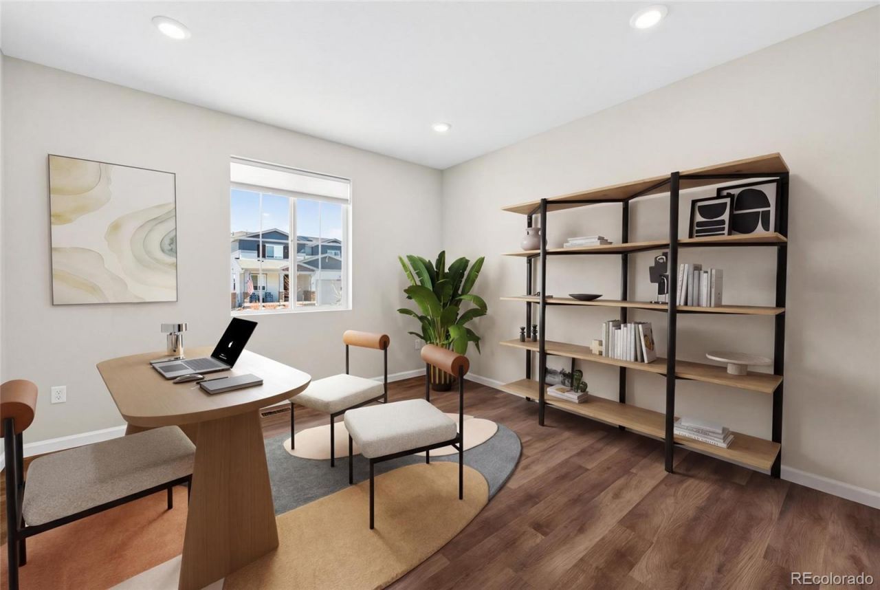 Welcome to this gorgeous home featuring 3 bedroom/2.5 bath, plus office & loft in the highly sought after Turnberry Neighborhood. This home is BETTER THAN NEW (just 3 years old), located on a quiet street, and showcases an open floor plan, laminate floors throughout, and a sizeable 0.25 acre corner lot. The kitchen showcases quartz countertops, kitchen island, Stainless Steel appliances, large pantry, great cabinet storage, and ample space for both cooking and entertaining. The abundance of natural light pours into the spacious living room which is open to the kitchen and dining area. A sizeable office (could also be used as a 4th bedroom) and the perfect powder bath are found just around the corner. The upper level boasts two secondary bedrooms- one with with ample closet space and the second with a walk-in closet. A convenient 2nd floor laundry room & a full bathroom with dual sinks, quartz contertop, tub and shower are also found upstairs. The primary suite, complete with a relaxing 4 piece ensuite bath includes dual sinks, quartz countertop, stand-up shower & generously sized walk-in closet. Enjoy entertaining in the large fully fenced and irrigated backyard with concrete patio space. The oversized garage offers 450 sq ft of drywalled space and storage for cars & tools alike. The Turnberry neighborhood offers a park, is located in the highly ranked 27-J school district, and is just a short drive to nearby shopping, dining, and entertainment. Commerce City is located with easy access to 104th Ave, Highway 85, I-76, & E470 and just 30 minutes outside of Denver and 20 minutes from DIA. Dont miss your opportunity to own this incredible home, schedule your showing today!