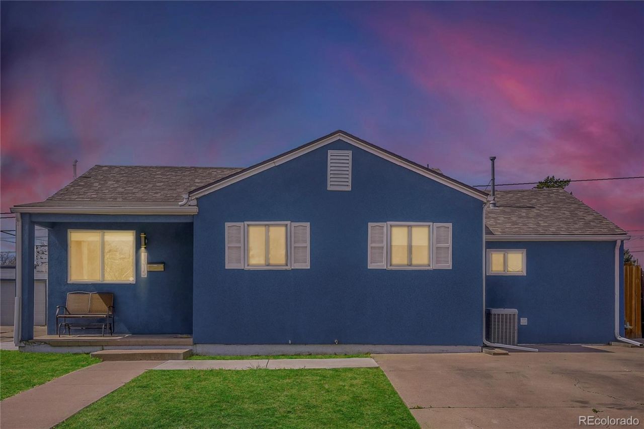 Modern Ranch with Solar: Where Family Comfort Meets Hosting. Located within walking distance to essential stores and some of the most authentic Mexican and Pho restaurants in Southwest Denver, this well-maintained ranch blends modern efficiency with spacious entertaining, featuring new wood floors throughout and an inviting open concept design anchored by an oversized countertop and abundant cabinet space for cooking and storage. The primary bedroom features vaulted ceilings, dual generous closets, and a newly built bathroom with an oversized walk-in shower. The homes crown jewel is the 400 sq. ft. Family/Party Room, filled with natural light and a convenient built-in bar, creating a versatile space for all-season gatherings. Elegant French doors lead to an expansive covered terrace, perfectly designed for year-round hosting, and a large high-fenced backyard ensures total privacy and an exceptionally kid-friendly environment where everyone stays connected. The existing layout also allows for a fourth bedroom and or bathroom conversion with minimal investment. Enjoy peace of mind with high-end upgrades, including a high-capacity new HVAC system, a new whole-home humidifier, a large storage shed, and low-maintenance stucco for added durability and energy efficiency. Experience true energy independence with new, fully paid off solar panels that deliver monthly savings from day one. Located just a five-minute walk from Garfield Park and Sanderson Gulch Park and Trail, this move-in-ready home is a rare find for those seeking a vibrant, low-maintenance lifestyle.