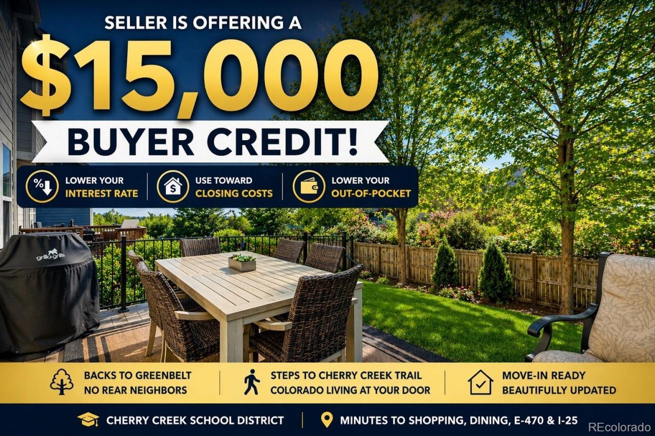 Welcome to The Greenbelt Retreat - and your fresh start.The seller is offering a $15,000 credit that can help cover closing costs, buy down your interest rate, or reduce your out of pocket expenses. It is the kind of head start that makes a real difference.Nestled in a quiet Englewood neighborhood and backing directly to a greenbelt with no rear neighbors, this beautifully updated 3 bedroom, 3 bath home is truly move in ready. No renovation stress. No surprise projects. No contractor on speed dial. Someone already handled all of that for you.Step inside to freshly refinished hardwood floors, new interior paint, and a striking open metal stair railing that creates an airy architectural feel the moment you walk in.The kitchen is the kind you actually want to cook in. New cabinetry with slide out drawers, quartz countertops, updated appliances, and an open layout that flows naturally into the living and dining areas. Natural light does the rest.Upstairs, all three bedrooms are tucked away from the main living spaces, including a private primary suite with an updated bath and a walk in closet that is fully finished and organized. The additional bathrooms have been refreshed with modern touches, and new designer carpet makes the upper level comfortable and inviting.The unfinished basement is ready for whatever comes next. A home gym, media room, extra storage, or future equity you create on your own timeline.Outside, a custom low maintenance deck with a retractable sunshade is perfect for morning coffee, weekend grilling, or relaxing at the end of the day. Direct greenbelt access and steps to the Cherry Creek Trail mean Colorado living is literally in your backyard.Located in the Cherry Creek School District with easy access to shopping, dining, E-470, and I-25.This is the home where you skip the fixer upper chapter entirely and move straight into the life you want.Come see it.