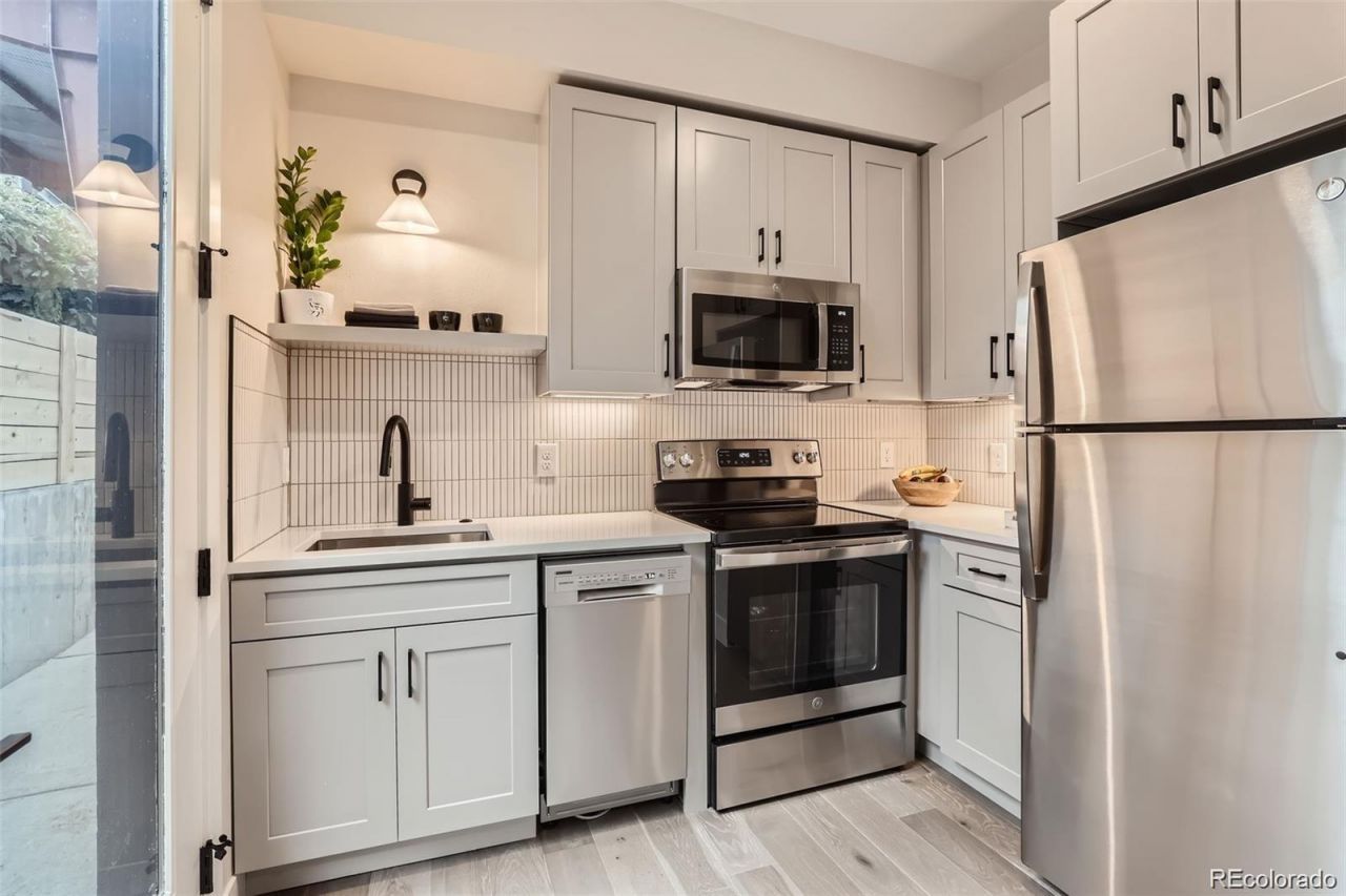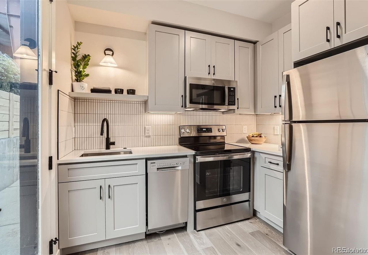 Enjoy modern, low-maintenance living in this stylish Sunnyside rental, ideally located in one of Denvers most walkable and vibrant neighborhoods. This end-unit offers true main-level living with no stairs and only one shared wall, providing both convenience and privacy.Inside, soaring ceilings and large windows fill the space with natural light. The kitchen features quartz countertops, slow-close cabinetry, and a full appliance package including a dishwasher, microwave, range, oven, and refrigerator. Tile and wood flooring run throughout, complemented by ceiling fans, central A/C, and in-unit laundry hookups.Step outside to a private patio, perfect for relaxing. The home includes public water and sewer, electricity, cable availability, and forced air heating. Built with quality materials including brick, frame, and stucco, it also features a durable membrane roof.Located in Sunnyside, youre within walking distance to the Fox Street Light Rail Station and the lively 38th Avenue corridor. Enjoy nearby favorites like Huckleberry Roasters, Crooked Stave Taproom, Diebolt Brewing Company, Waldschänke Ciders & Coffee, and River Yoga. Easy access to bike trails and pedestrian bridges connects you to the Highlands, RiNo, and Downtown Denver.This perfect condo offers a blend of modern design, prime location, and easy urban living.