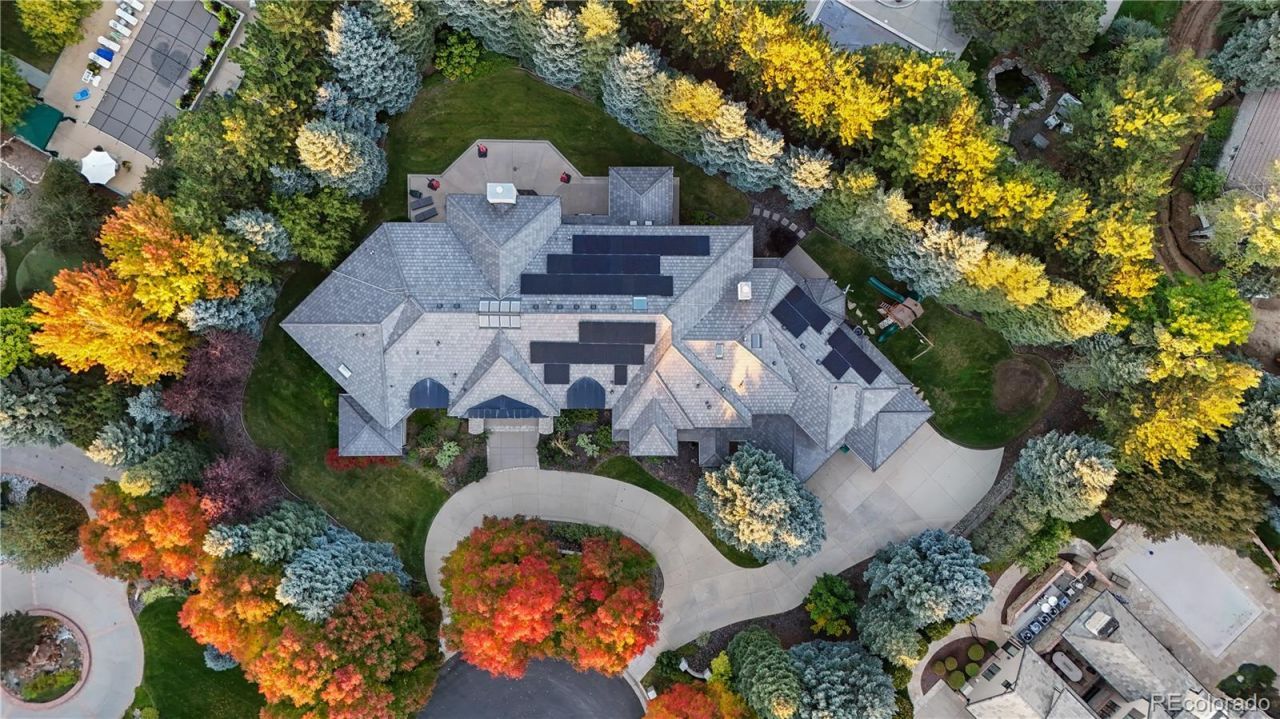 An exceptional estate in Cherry Hills Farm blending timeless elegance with modern sophistication. Recently reimagined, this over 16,000 sq ft residence delivers an unmatched living experience on a private cul-de-sac.A circular driveway and manicured grounds lead to a dramatic entry featuring a dual glass Imperial staircase beneath soaring 30+ foot ceilings. Light-filled great rooms showcase floor-to-ceiling windows, sleek porcelain-encased fireplaces, and an effortless flow ideal for everyday living and grand entertaining.The main level offers a custom wet bar with illuminated displays and aquarium centerpiece, soundproof theater with tiered seating, glass-enclosed wine cellar with automated dispenser, and an entertainment wing with golf simulator and lounge. The chefs kitchen boasts dual Dekton islands, Wolf and Sub-Zero appliances, built-in coffee station, butlers pantry, and seamless indoor-outdoor connection.Upstairs, the primary suite offers a private balcony, fireplace, spa-inspired bath with double walk-in shower, soaking tub with water feature, and boutique-style dressing room with custom lighting and sound. Five additional ensuite bedrooms provide private retreats with luxury finishes.Additional highlights include an attached apartment with private entrance and full kitchen, two home offices, upper-level fitness studio with ensuite bath, finished lower level with game room, art room, and abundant storage. A Savant smart-home system, automated shades, nine heating/cooling zones, owned solar panels offsetting 140% of energy costs, and advanced security with cameras enhance the property.Set on nearly an acre with mature trees and manicured landscaping, the estate offers both a serene retreat and entertainers dream.