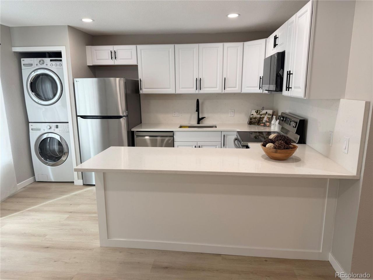 2/1 Buydown offered, so payments are affordable!!! This fully remodeled unit features a completely new bathroom with a walk-in shower, large walk-in closet, updated kitchen with self-close cabinets, deep drawers, 2 lazy-susans, quartz counters and backsplash, and all new SS appliances included. Full-sized washer and dryer also come with the unit. New windows, luxury vinyl flooring, fresh paint, and a tiled fireplace enhance the space. Enjoy a tankless water heater, a ground-floor patio, and a grassy area?ideal for pets. The attached carport is conveniently located on the back of the unit. Hickory Place is between Cornerstone Park with Pickleball courts, bocce, and Progress Park and just minutes from DTC and Downtown Littleton. Move-in ready.