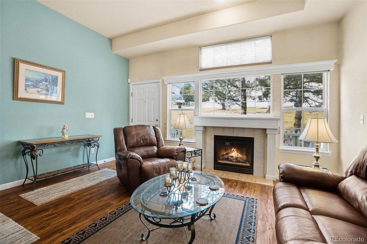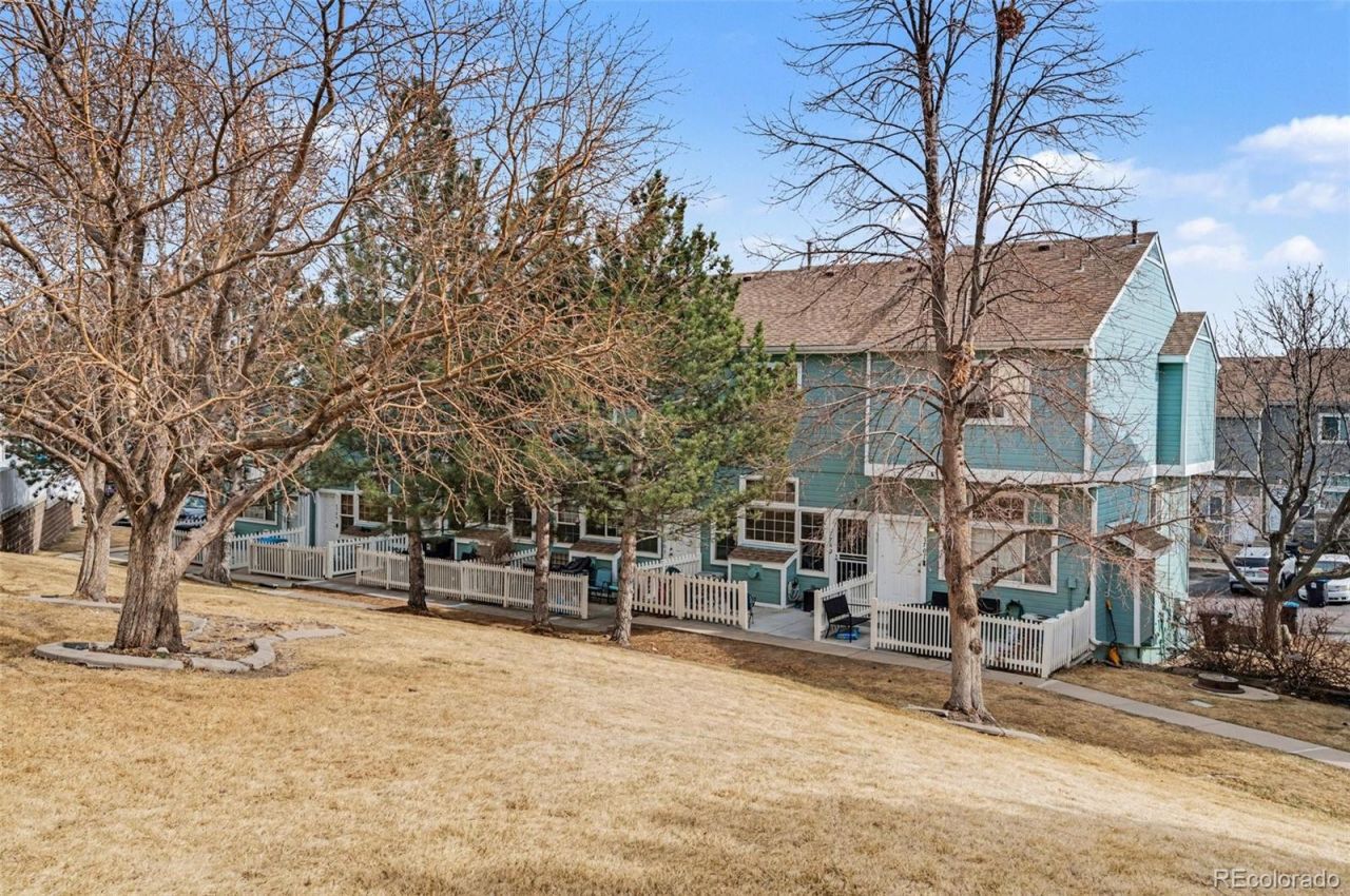 Beautiful 2-Story Condo Backing to GreenbeltPerfectly positioned in one of the best locations in the community, this 2-bedroom, 3-bath condo fronts to a park-like greenbelt with mature shade trees and open space. Enjoy peaceful mornings on your private fenced patio or step right out with room to roam.Inside, luxury vinyl plank flooring runs throughout both levels, creating a clean, modern look. The open-concept main floor features soaring ceilings, large picture windows that fill the space with natural light, and serene greenbelt views. A cozy gas fireplace with mantle anchors the living room, making it an inviting space to relax or entertain.The kitchen offers ample counter space, oak cabinetry, and a high-top serving bar that flows seamlessly into the dining area. Take in unobstructed eastern views and beautiful sunrises right from your kitchen window.Upstairs, youll find two generously sized en-suite bedrooms?ideal for guests, a home office, or added privacy. The primary suite features a newly updated oversized shower with sliding glass doors.Additional highlights include:? Attached 1-car garage with bonus storage room? Furnace, A/C, and water heater only 3 years old? All appliances includedThe community amenities include a pool, clubhouse, playground, guest parking, water, trash, snow removal, and exterior maintenance.Conveniently located near shopping, dining, parks, trails, light rail, and major highways for easy commuting.Move-in ready and ideally located?this one checks all the boxes.